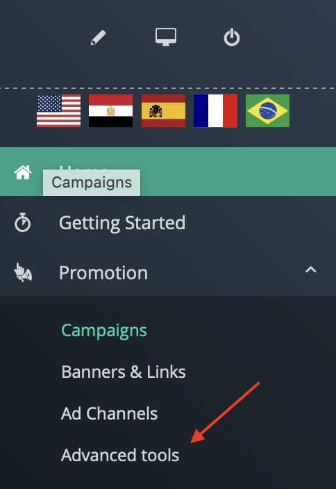 - On the affiliate system, click on “Advanced Tools” under promotion 🔻